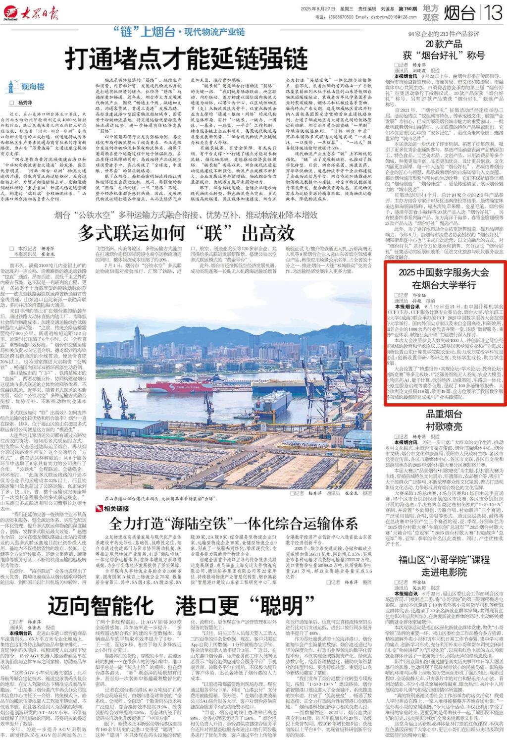 《大众日报》8月27日13版刊登《2025中国数字服务大会在烟台大学举行》
