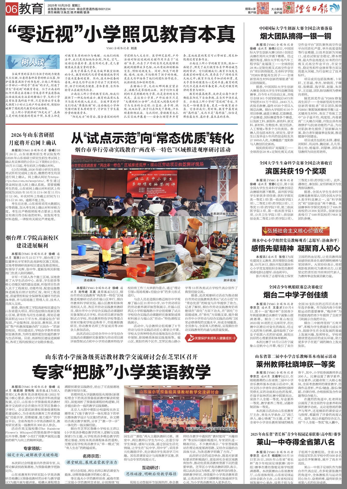 《烟台日报》10月29日06教育版刊发《中国国际大学生创新大赛全国总决赛落幕 烟大团队摘得一银一铜》