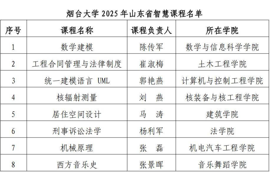 【本站讯】日前,2025年山东省智慧课程评选结果公布,烟台大学申报的8门课程全部入选,入选数量位居全省高校前列。