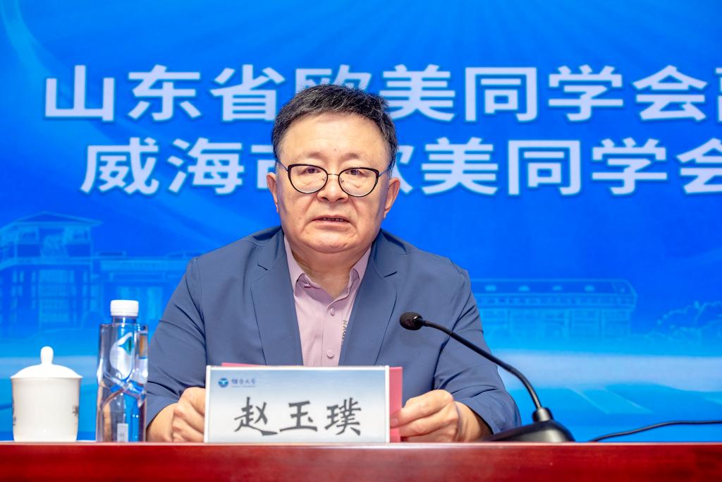 赵玉璞在致辞中代表山东省欧美同学会向大会的召开表示祝贺,向会员代表和全校广大留学人员致以诚挚的问候。他指出,烟台大学欧美同学会自成立以来,为提升学校的办学实力、学术影响力和国际化水平,服务山东省和烟台市经济社会发展作出了重要贡献。希望烟台大学欧美同学会强化思想政治引领,凝聚向心力、画好同心圆;围绕中心、服务大局,展现新担当、实现新作为;用心用情做好服务,体现组织关怀、建好温暖之家。