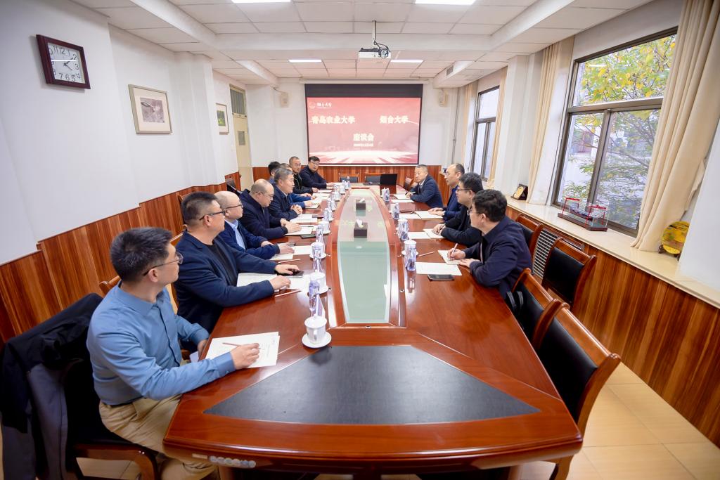 【本站讯】11月4日,青岛农业大学副校长孟晓军一行来校考察交流。烟台大学党委书记卢国强会见孟晓军一行,党委常委、副校长初磊及后勤管理处相关负责人参加座谈。