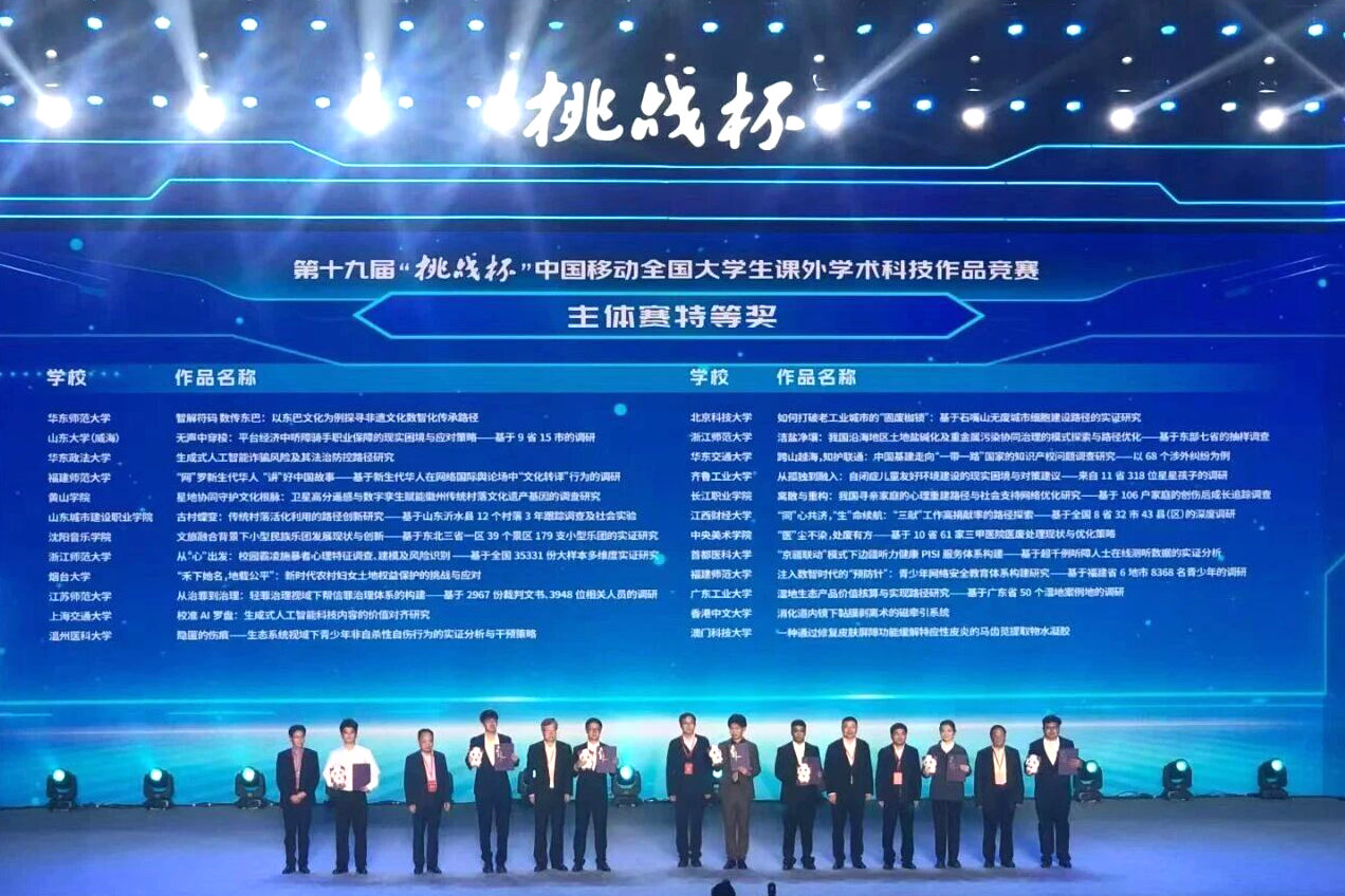 黄海潮涌,科创风劲;勇于挑战,再攀高峰。第十九届“挑战杯”全国大学生课外学术科技作品竞赛决赛落下帷幕。烟台大学学子在这场被誉为中国大学生科创领域“奥林匹克”的赛事中再续荣光,斩获主体赛特等奖1项、二等奖3项,获奖数量居全省高校首位,总成绩位列省属高校第一,创下历届国赛最佳战绩,更实现自2022年以来连续三届摘得主体赛特等奖的辉煌成就,用青春之力书写了“无挑战,不青春”的奋进篇章。这份沉甸甸的成绩单,是烟大学子以青春赴使命的生动注脚,更是学校深耕科创育人的璀璨成果。