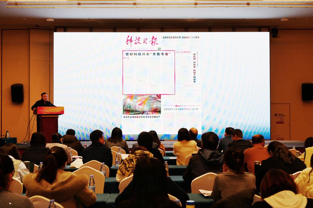王晓华回顾了山东高校校报研究会40余年的发展历程,致敬了一代代校报人坚守初心、深耕细作的宝贵精神和优良作风。他表示,作为山东省高校校报研究会重要成员,《烟台大学报》始终与研究会同频共振、同题共答、同向发力,为山东省高校校报高质量发展作出了突出贡献,期待未来继续扛牢“走在前、挑大梁”的使命担当,真抓实干、久久为功,续写高质量发展的崭新篇章。