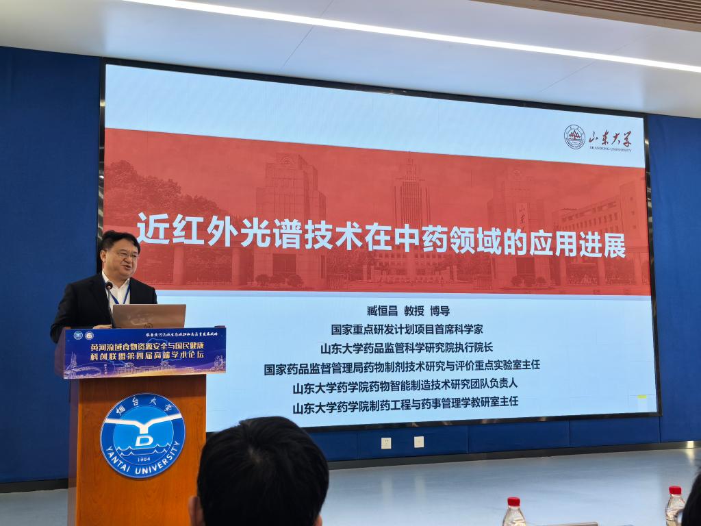 在论坛学术报告环节,山东大学药品监管科学研究院执行院长臧恒昌、青海大学省部共建三江源生态与高原农牧业国家重点实验室首席专家魏登邦、中国海洋大学食品科学与工程学院副院长李振兴、中国科学院青岛生物能源与过程研究所研究员付春祥、中国科学院西北高原生物研究所研究员张发起、烟台大学土木工程学院副院长张劲、山东省农业科学院研究员彭立增等七位专家,分别围绕“近红外光谱技术在中药领域的应用进展”“高原动物低氧适应机制研究”“生食水产品内源性危害因子控制”“资源植物分子育种技术”“青藏高原植物多样性保护”“黄河流域水文连通与生境恢复”“植物源天然活性产物高值化利用”等方向作学术报告。报告内容紧扣主题、立足前沿,引发了与会者的热烈讨论与交流。