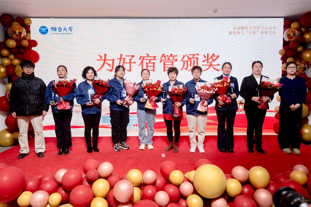 【本站讯】12月29日,首届烟台大学学子心目中服务育人“七好”表彰大会在校举行。学校领导卢国强、郝曙光、王强、姚昌、张献勇、初磊、刘伟、王洪波、杨众晖出席大会,相关职能部门负责人、首届70位“七好”荣誉称号获得者及各学院学生代表共同参加。