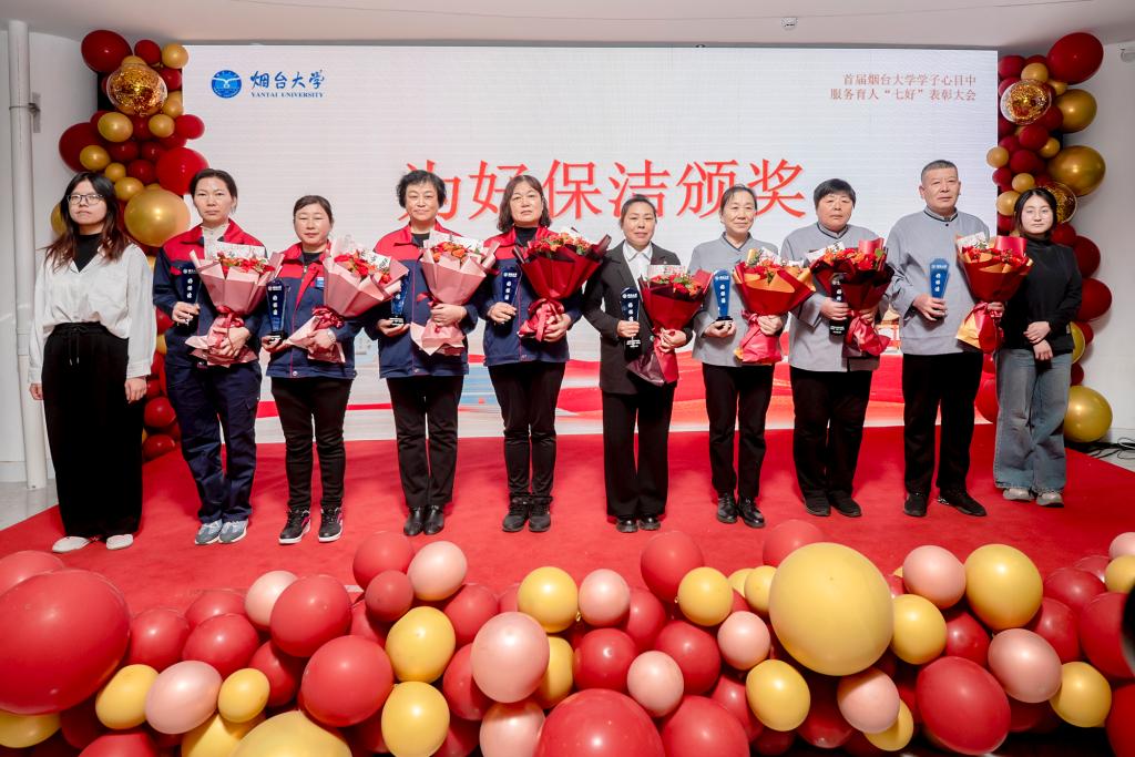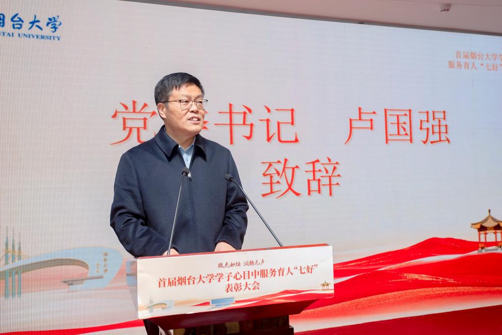 党委书记卢国强在致辞中代表学校党委向首届“七好”荣誉称号获得者表示热烈祝贺,向常年默默奉献在校园各个角落的全体服务保障人员致以崇高敬意。卢国强指出,2025年,学校聚焦改革提质主题主线,大力推进办学条件全面改善,一系列民生举措落地见效,师生获得感和满意度持续提升,这些成绩的取得离不开全体服务保障人员的坚实托举。他表示,希望获奖榜样珍视荣誉,争做服务育人的示范者;学生组织发挥优势,当好爱校荣校的引领者;青年学子感悟奉献,学做爱岗敬业的践行者;全体教职员工同心聚力,做好和谐烟园的共建者。他寄语全体烟大学子以“七好”榜样为引领,让点点微光汇聚成照亮校园的育人炬火,凝聚起“劳动光荣、服务可贵”的价值追求,为高水平大学建设注入温暖而坚实的力量。
