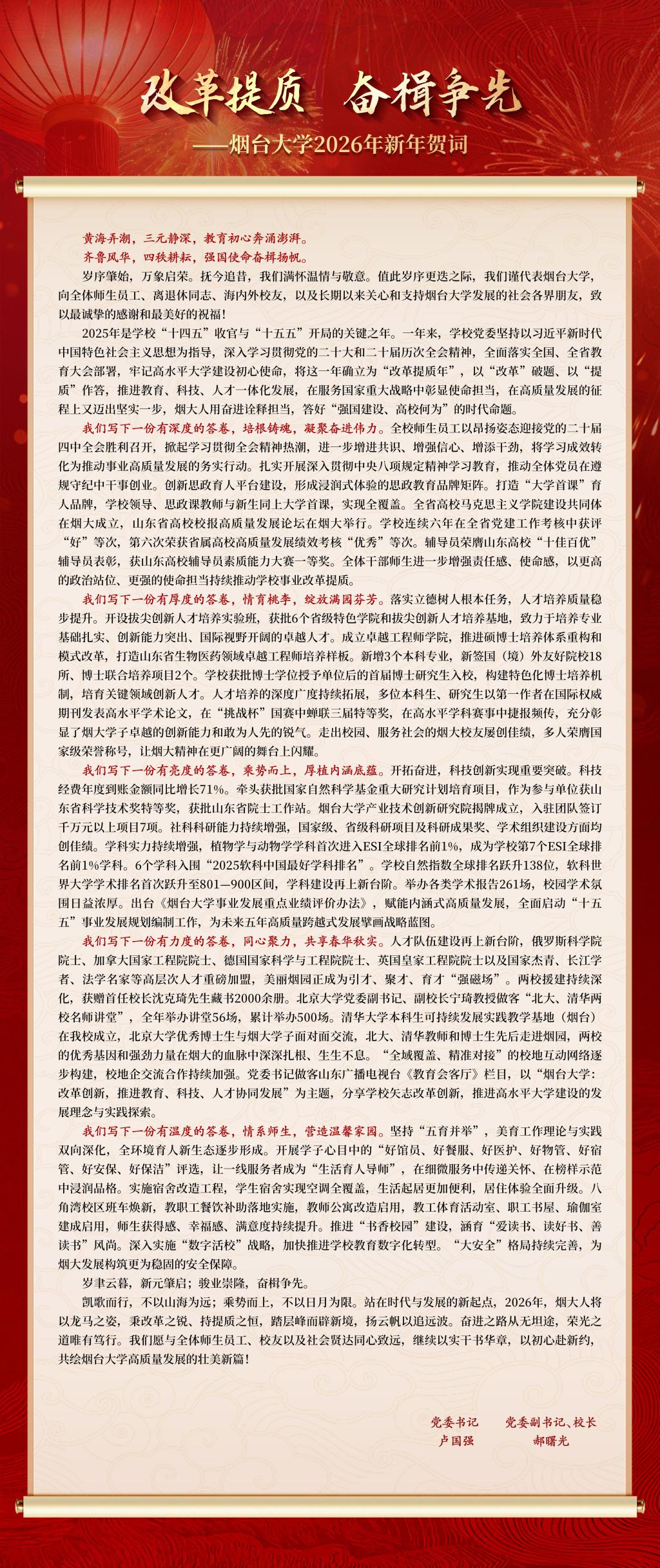 改革提质 奋楫争先——烟台大学2026年新年贺词