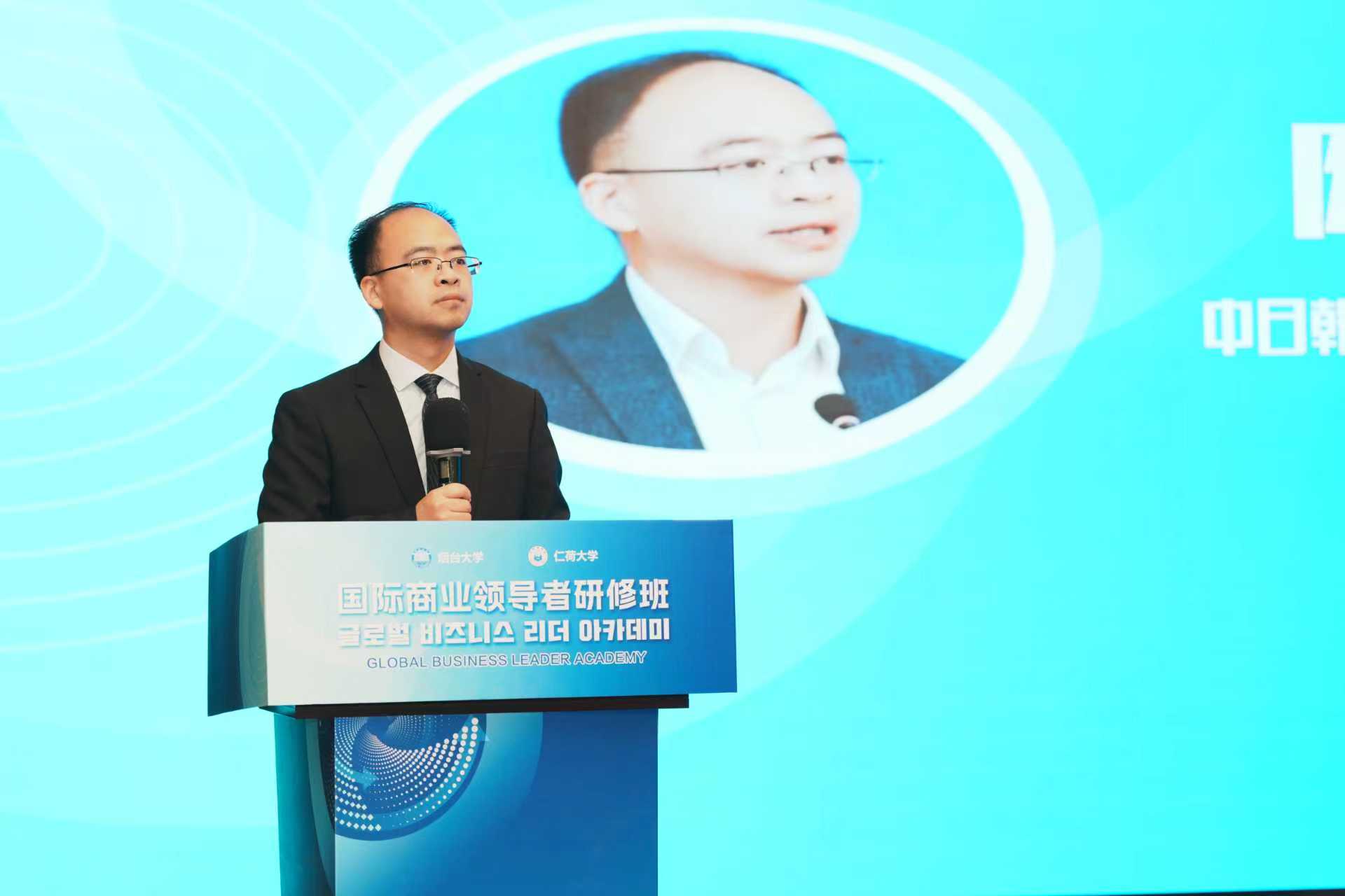 中日韩创新合作中心秘书处负责人陈军介绍了中日韩创新合作中心基本情况,表示希望以此次研修为契机,深化与烟台大学、仁荷大学及各位企业家的务实合作,通过提供从项目对接到落地孵化、技术匹配到金融支撑的全链条服务,助力大家实现价值跃升与事业突破。