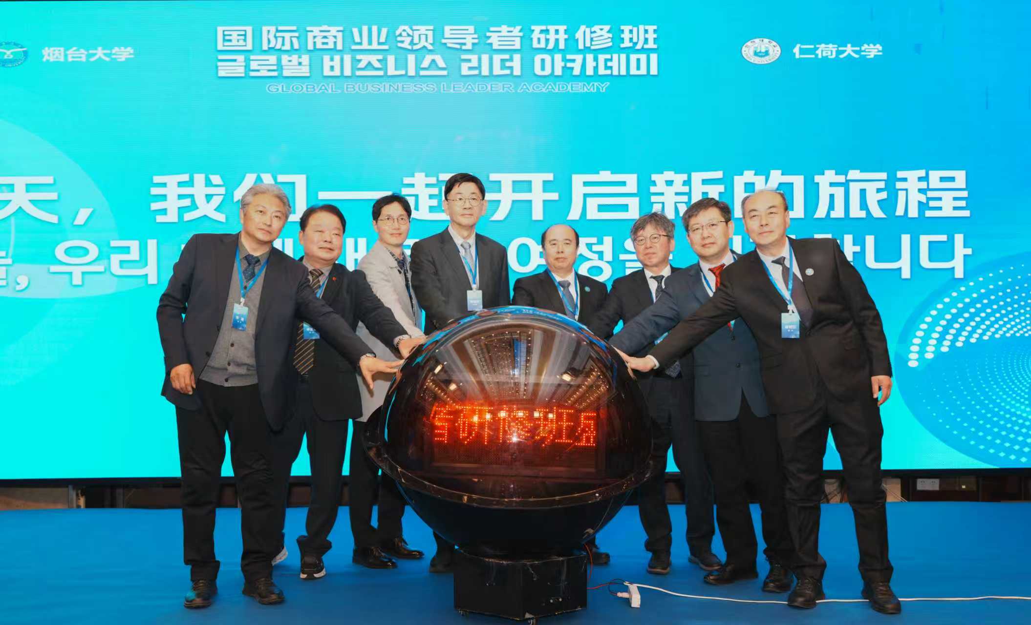 【本站讯】3月6日,烟台大学与韩国仁荷大学共同举办的第二期国际商业领导者研修班在烟开班。韩国仁荷大学副校长金雄熙,韩国驻青岛总领事柳昌秀,烟台大学校长郝曙光、副校长王洪波,来自烟台、青岛、威海的韩国社团以及中日韩创新合作中心代表、第二期研修班学员参加开学典礼。国际合作交流处、继续教育学院、经济管理学院负责人参加活动。