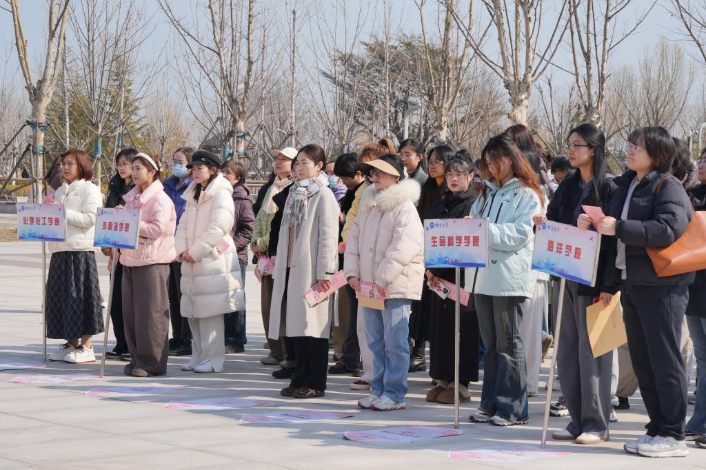 随着发令枪响,女教职工沿着规划路线阔步前行,途中或驻足打卡留念,定格春日里的美好瞬间;或有序排队参与抽奖兑奖,收获专属的节日惊喜;或欣赏校园春日盛景,共叙同事间的深厚情谊。大家既享受着健步走带来的活力与惬意,也在轻松互动中增进了交流、凝聚了共识,成为校园里最靓丽动人的风景线。学校部分男教职工主动担当志愿者,有条不紊地引导路线、维护秩序、协助打卡抽奖,以细致周到的服务保障活动有序推进,尽显烟大教职工团结互助的浓厚氛围。