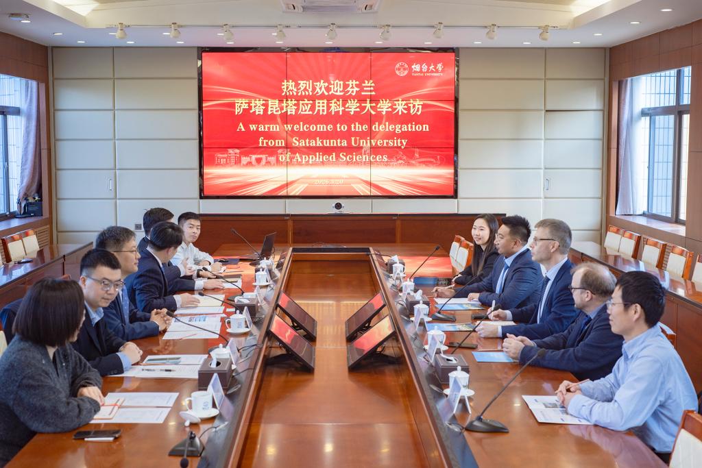 【本站讯】3月20日,芬兰萨塔昆塔应用科学大学副校长迪莫·马迪拉率团访问我校,烟台大学副校长王洪波会见客人。国际合作交流处、机电汽车工程学院主要负责人,烟台市人民政府外事办公室相关人员参加活动。
