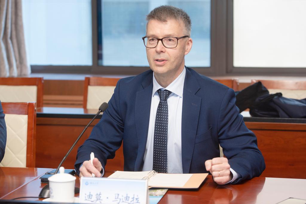 迪莫·马迪拉对烟台大学的热情接待表示感谢,并介绍了萨塔昆塔应用科学大学的基本情况、办学特色及国际化战略。他表示,两校学科专业契合度高、合作潜力大,期待双方未来在机器人等领域拓展合作,实现互利共赢。