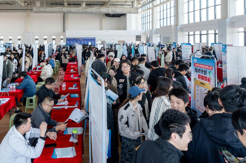 此次招聘会规模空前,参会企业总量首次突破900家,邀请了道恩集团、烟台东方威思顿电气、烟建集团、杰瑞石油、中天钢铁等众多知名重点企业,释放岗位近万个,企业需求覆盖本、硕、博各学历层次,涵盖装备制造、电子信息、能源化工、生物制药、金融服务、教育文化等众多行业领域。招聘会现场人潮涌动,氛围热烈而有序,近万名驻烟高校毕业生陆续到场应聘,经统计,现场达成初步就业意向约1500人。