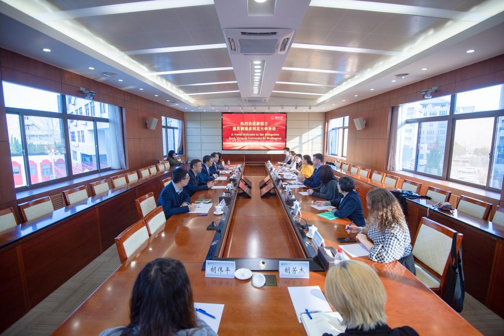 王洪波对洛根·班尼斯特一行表示欢迎,并介绍了烟台大学的发展历程、国际化办学成果以及和新西兰高校交流情况。他表示,两校自2025年开展中外高水平大学学生交流计划以来,首批英语专业学生已顺利入学,合作基础良好,希望双方进一步拓展在学生联合培养、教师互访、学术交流等领域的合作,推动两校友好关系持续深化。