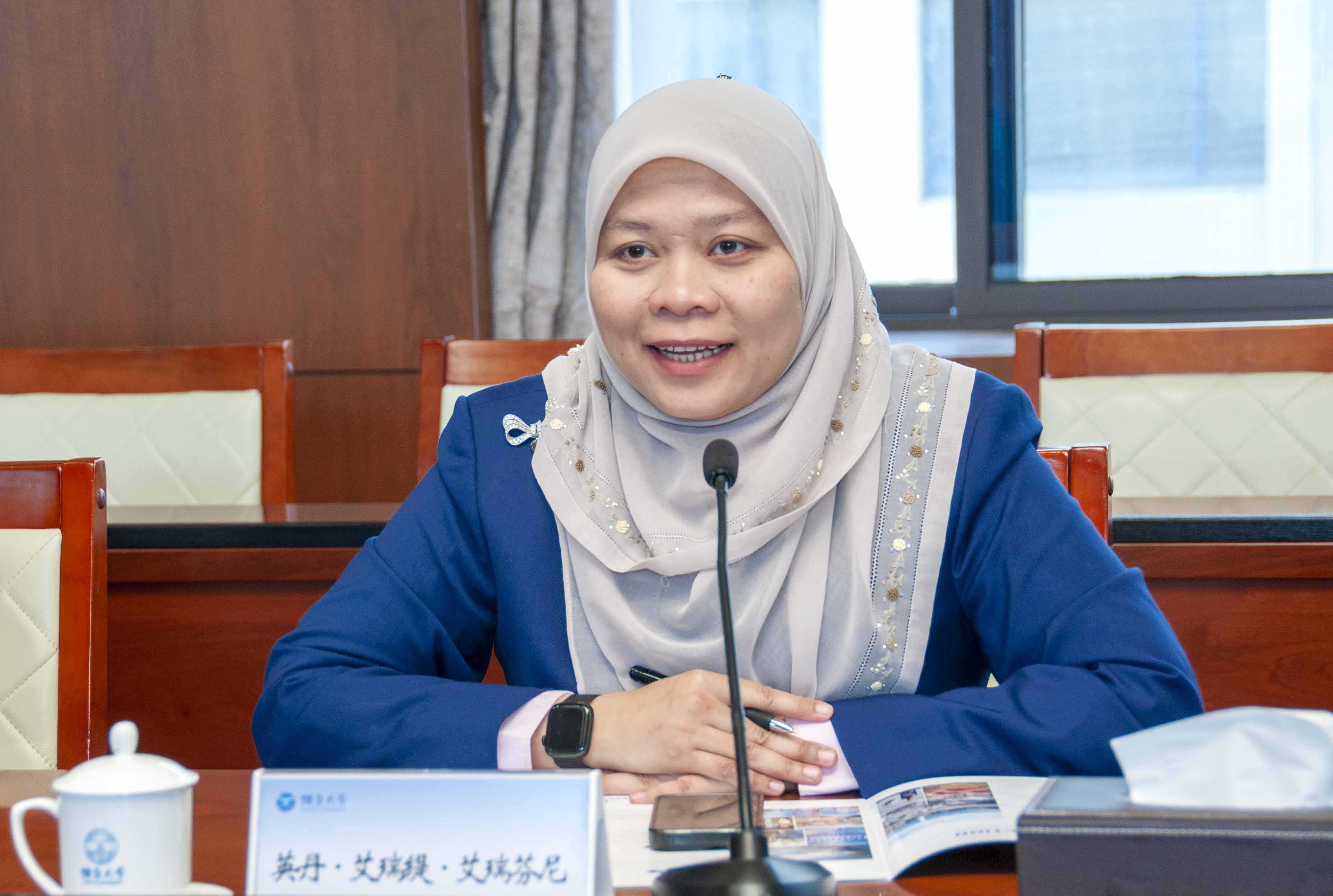 英丹·艾瑞缇·艾瑞芬尼对烟台大学的热情接待表示感谢,并介绍了马来西亚管理与科学大学的学科优势、国际化战略以及对华高校合作情况。她表示,两校在药学、工程、经济管理等多个学科高度互补,期待双方尽快启动实质性合作项目,实现互利共赢。