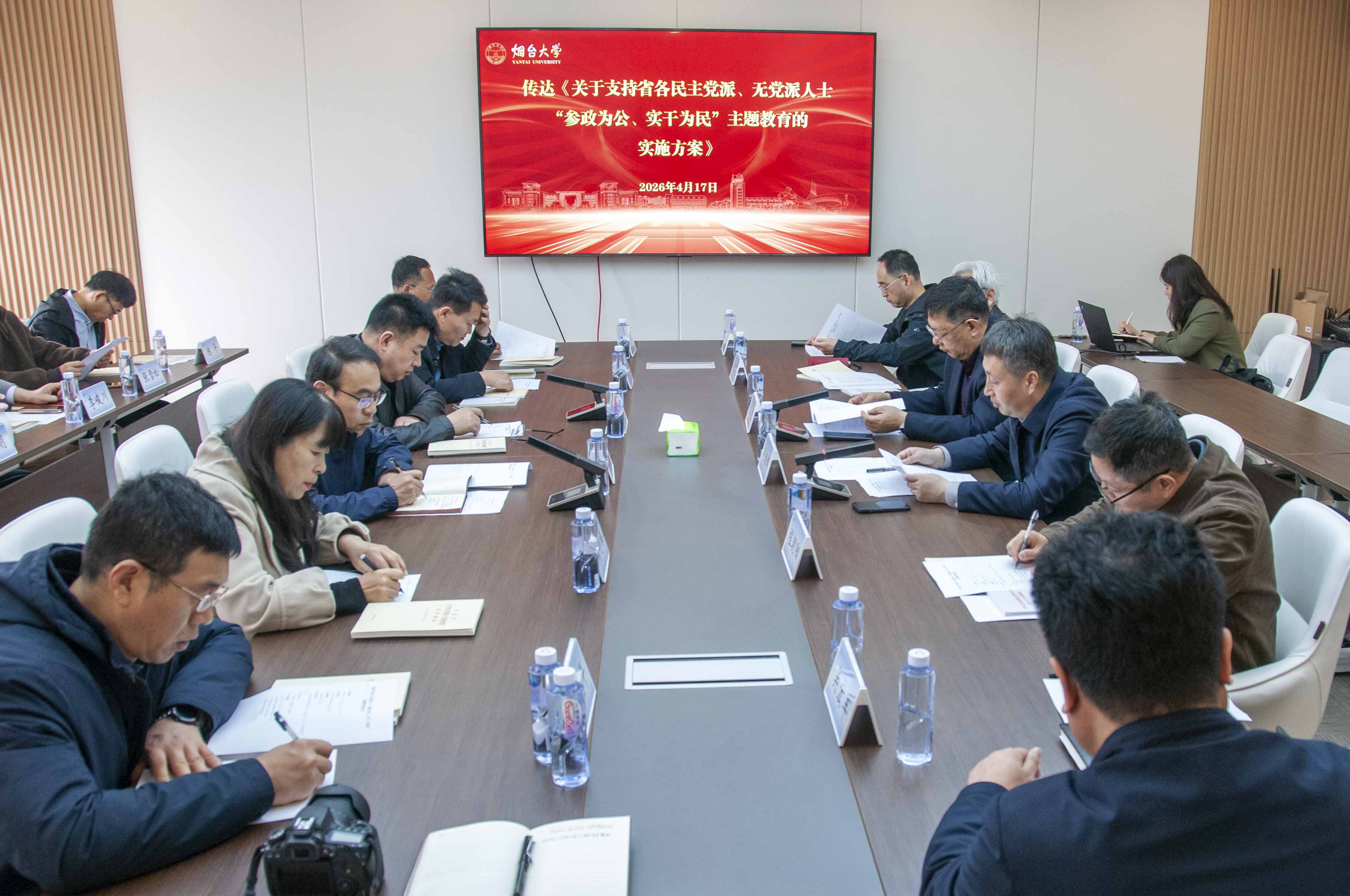 【本站讯】4月17日,学校召开各民主党派、无党派人士“参政为公、实干为民”主题教育动员会。党委副书记王强出席会议并讲话,学校各民主党派基层组织负责人、无党派人士代表、统战团体负责人参加会议。党委常委、统战部部长毕朝辉主持会议。