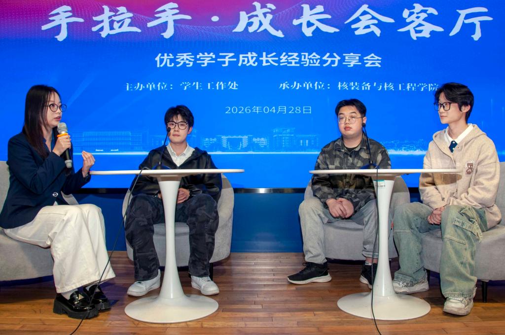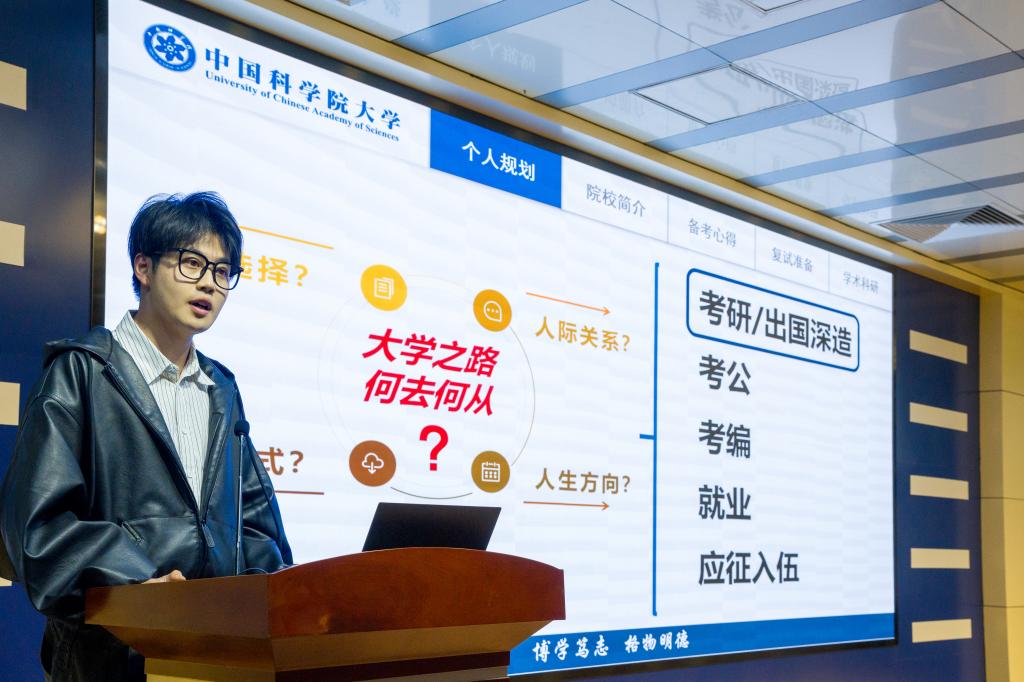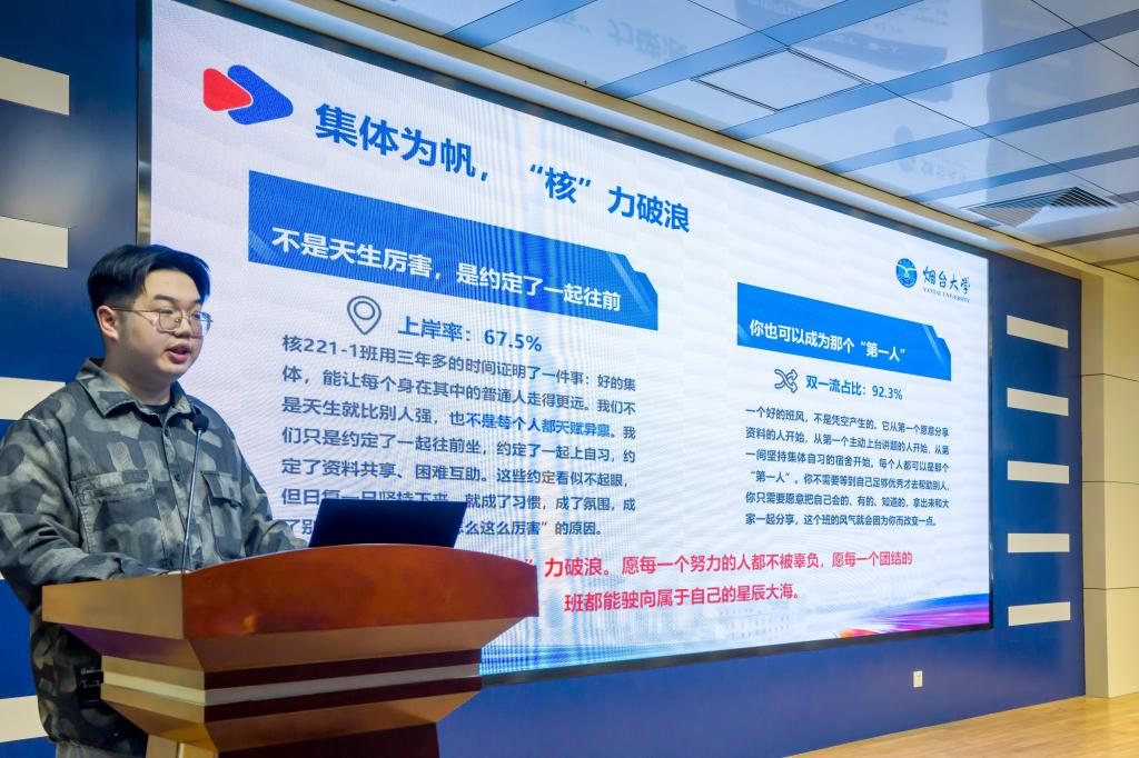 活动中,核装备与核工程学院陈锦欣、外国语学院韩鑫琦、化学化工学院周航宇、特里尔可持续发展技术学院纪致瑨分别以《潮起黄海之畔,共赴青春之约:集体为帆,“核”力破浪考研征途》《追光前行,不负青春——我的北大求学记》《从三元湖到雁栖湖——逐梦中科院,奔赴新征程》《烟大学子通往常青藤的国际化成长之路》为题,分享了自身成长经历与实践经验,为在场同学带来成长指引与励志启发。